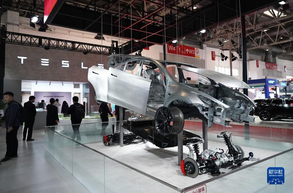 11月30日在鏈博會智能汽車鏈展區拍攝的特斯拉展位。