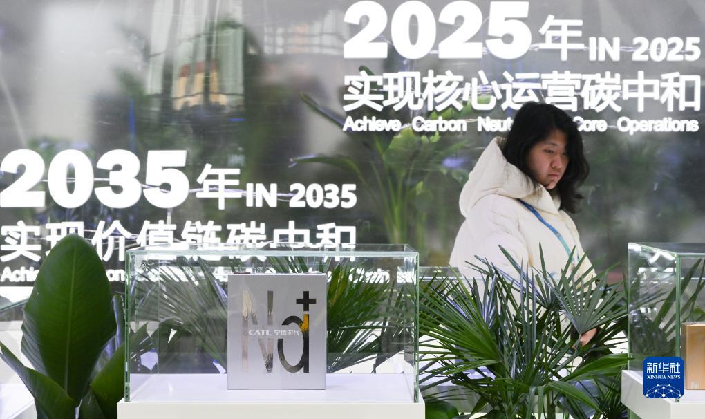 12月1日,一位參觀者在鏈博會智能汽車鏈展區寧德時代新能源科技股份有限公司展臺參觀鈉離子電池產品。