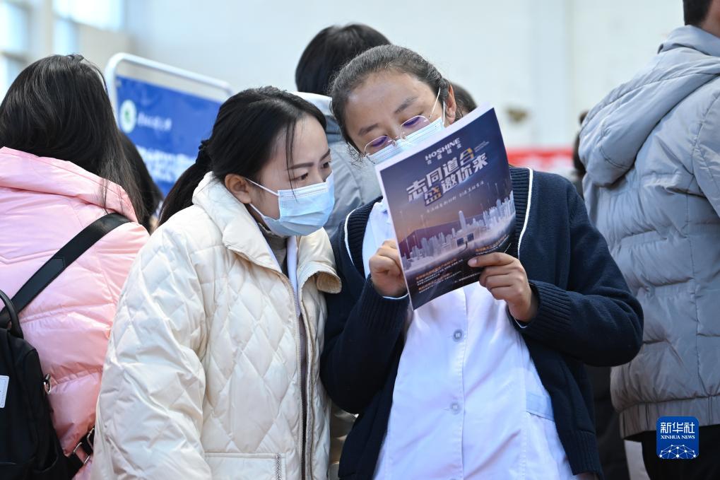 12月1日,兩名學生在校園招聘會查看企業招聘需求。