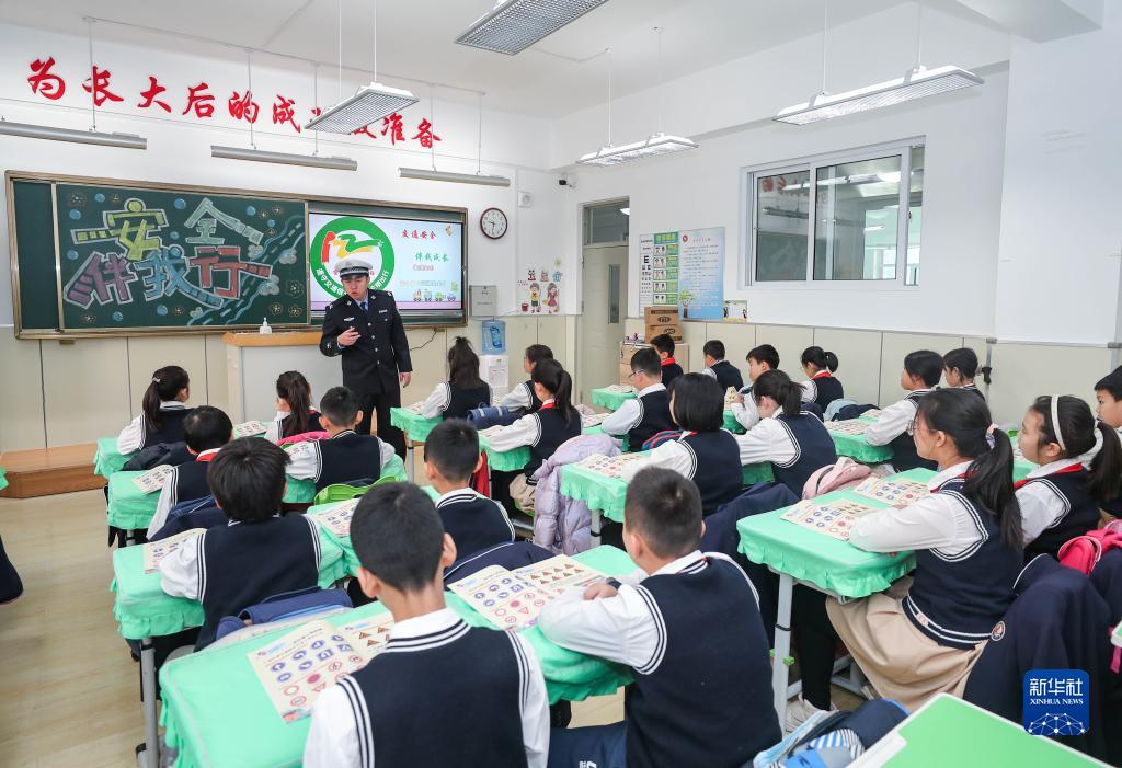 12月1日,沈陽市公安局交通警察局皇姑大隊交警萬林在沈陽市皇姑區童暉小學為同學們講解交通安全相關知識。