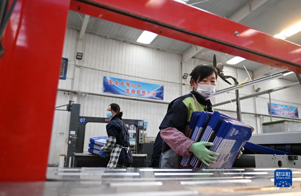 12月1日,位于望都縣的河北和瑞包裝有限公司工人在整理包裝紙盒。