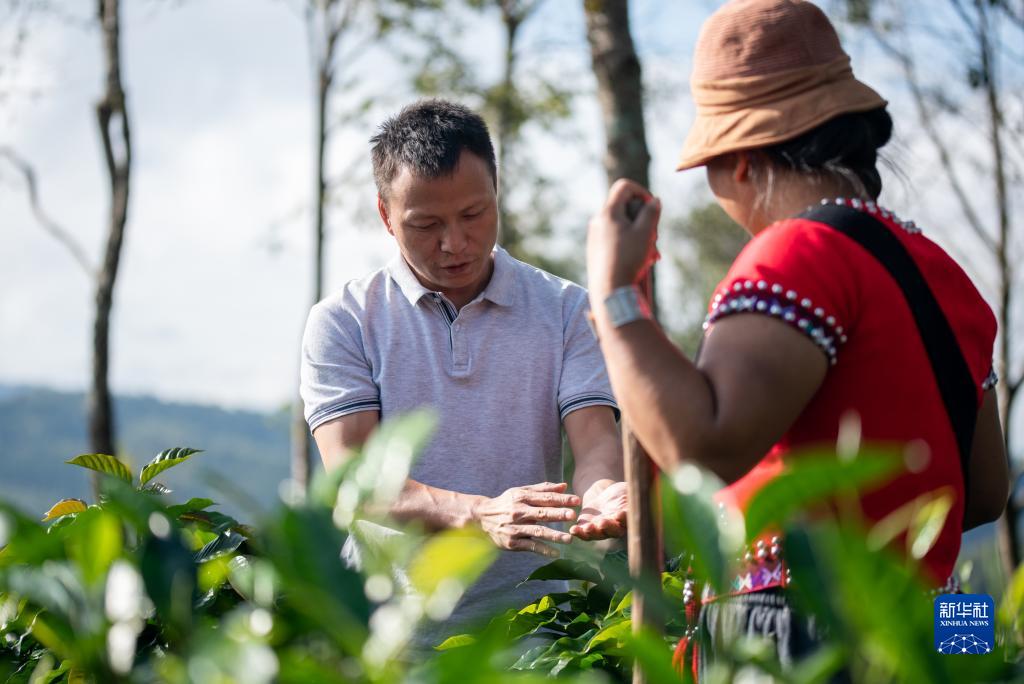 農藝師王萬東在位于云南省普洱市孟連縣的云南天宇咖啡合作社指導咖農種植咖啡(2022年8月攝)。