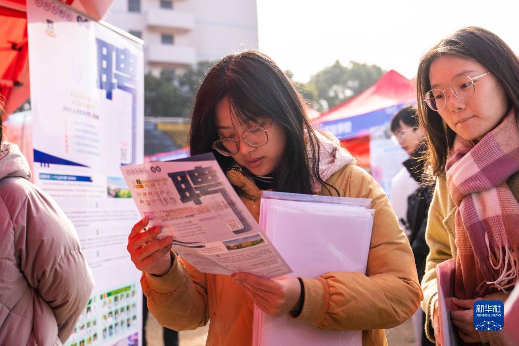 12月1日,在湖南師范大學體育場,求職學生在了解招聘信息。