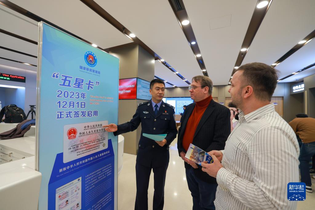 新版中華人民共和國外國人永久居留身份證12月1日正式簽發啟用。因加入了體現國家標識的五星元素,新版永居證被稱為“五星卡”。首日共有50名取得在華永久居留資格的外國人領取到了首批“五星卡”。他們來自美國、德國、英國、法國、俄羅斯、瑞典、新加坡、韓國等二十多個國家,均為在經濟、教育、科技、文化、衛生等多個領域為中國經濟社會發展作出了突出貢獻人員。