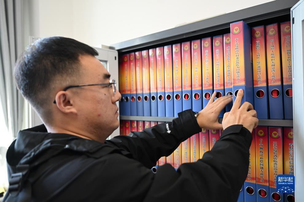 11月30日,在內蒙古呼和浩特市新城區信訪局,工作人員整理信訪代辦事項檔案。