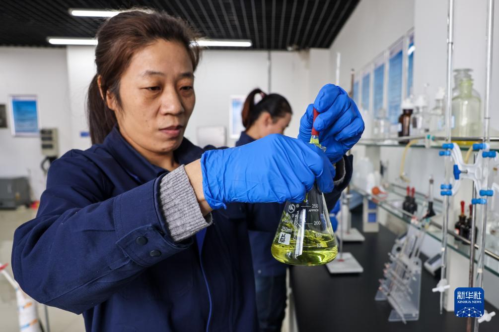 12月1日,在山東魯北高新技術開發區碧水源海水淡化有限公司海水淡化檢測室內,員工在檢測海水淡化指標。