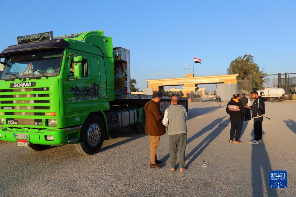 11月30日,完成援助物資運送任務的卡車從加沙地帶返回埃及。