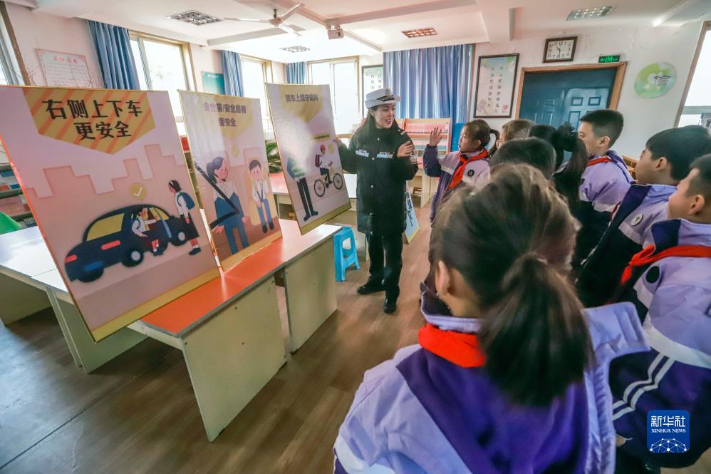 12月1日,民警在河北省遵化市第二實驗小學為學生講解交通安全知識。