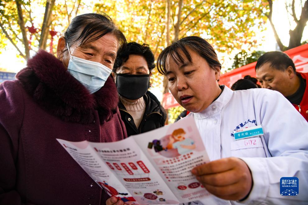12月1日,在河南省濟源市世紀廣場,醫護人員為市民講解防艾知識。