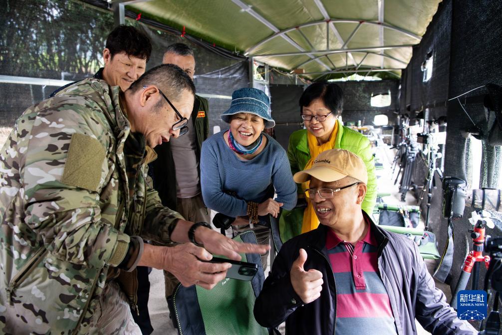 在位于永泰縣嵩口鎮的中華秋沙鴨觀測拍攝基地,陳林(左一)在向廈門老年攝影協會攝影愛好者介紹野生鳥類知識(11月30日攝)。