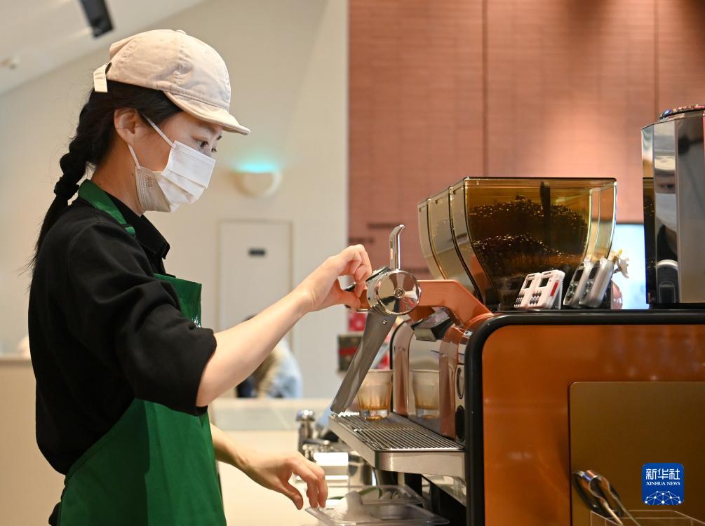 11月30日,李莎在調試咖啡機。