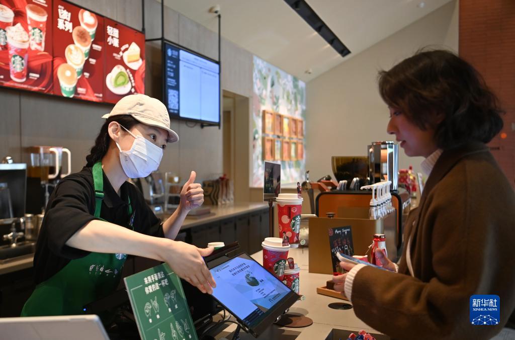 11月30日,李莎(左)用手語引導顧客點單。
