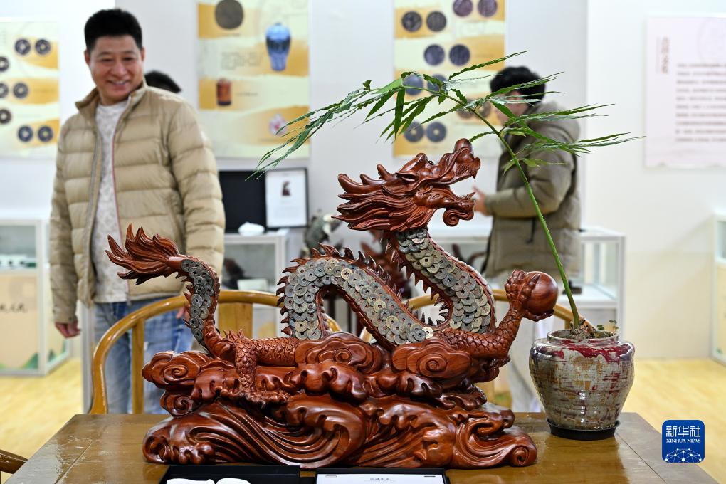 這是在中國錢幣博物館展臺上擺放的用乾隆通寶制作的龍年文創藝術品(12月1日攝)。