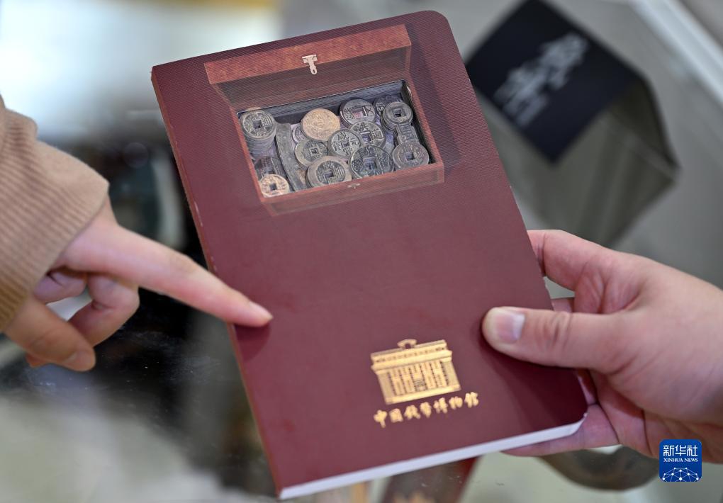 這是中國錢幣博物館展區內展示的一款基于中國古錢幣設計的文創筆記本(12月1日攝)。