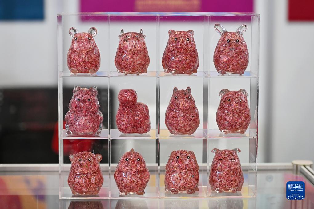 這是在博覽會上展示的北京印鈔有限公司用鈔渣制作的十二生肖文創紀念品(12月1日攝)。