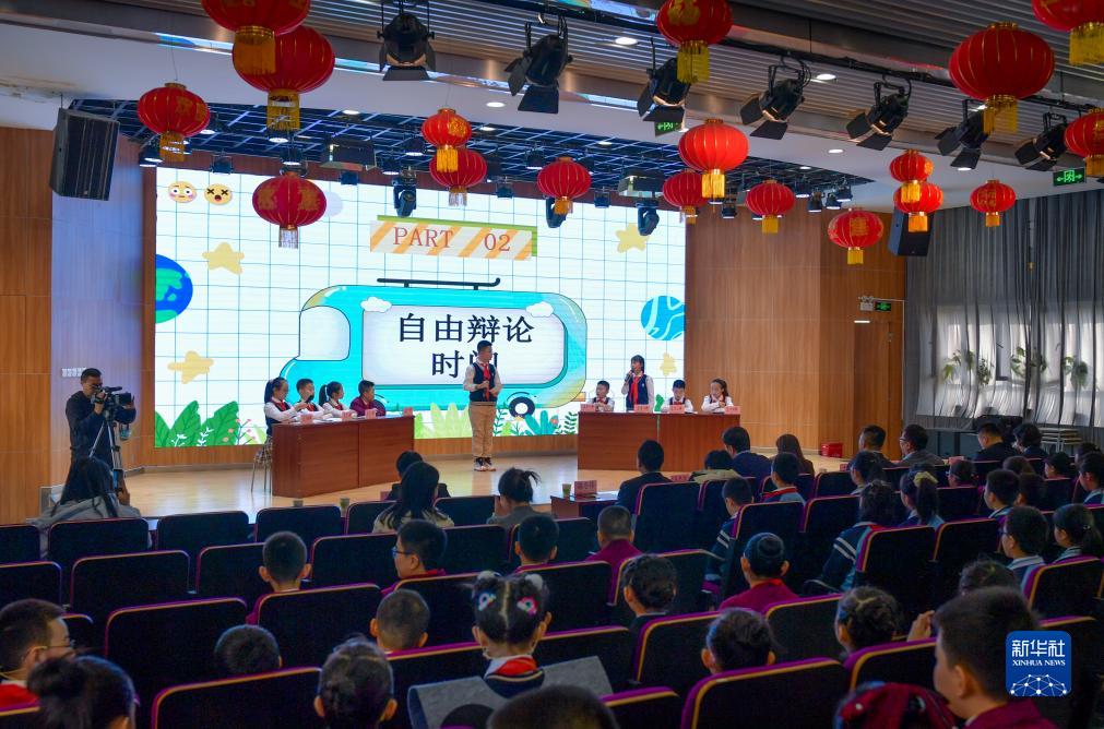 12月1日,在烏魯木齊市第十三小學教育集團成員校第八十八小學,學生在法治辯論賽中辯論。