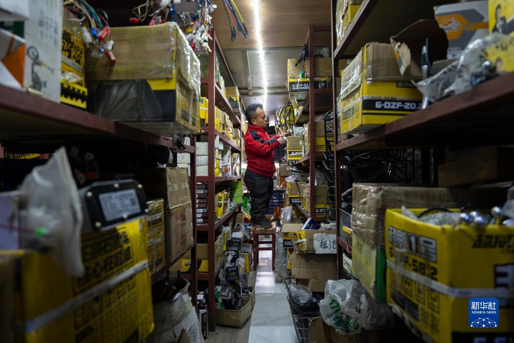 11月15日,在內蒙古自治區烏海市“李宏偉專修電動車”維修店,李宏偉在整理配件。