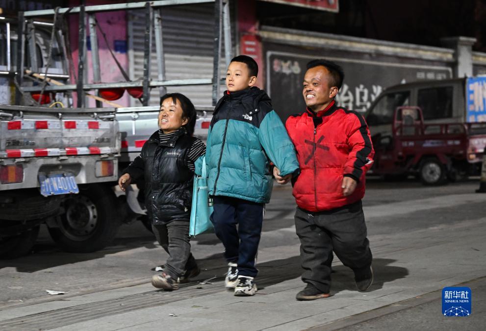 11月14日,在內蒙古自治區烏海市,李宏偉(右)和妻子張麗麗(左)接孩子回家。