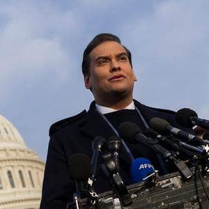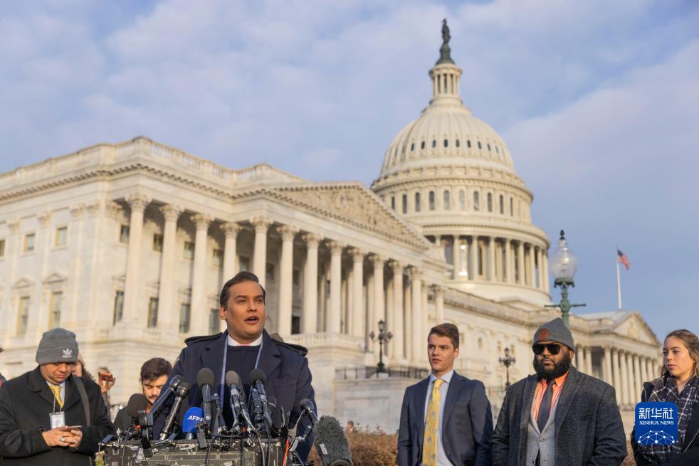 11月30日,喬治·桑托斯(左三)在美國華盛頓國會外舉行的新聞發布會上對媒體講話。