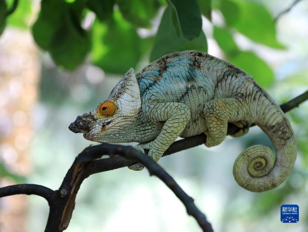這是11月27日在馬達加斯加馬羅澤沃村蝴蝶谷拍攝的變色龍。