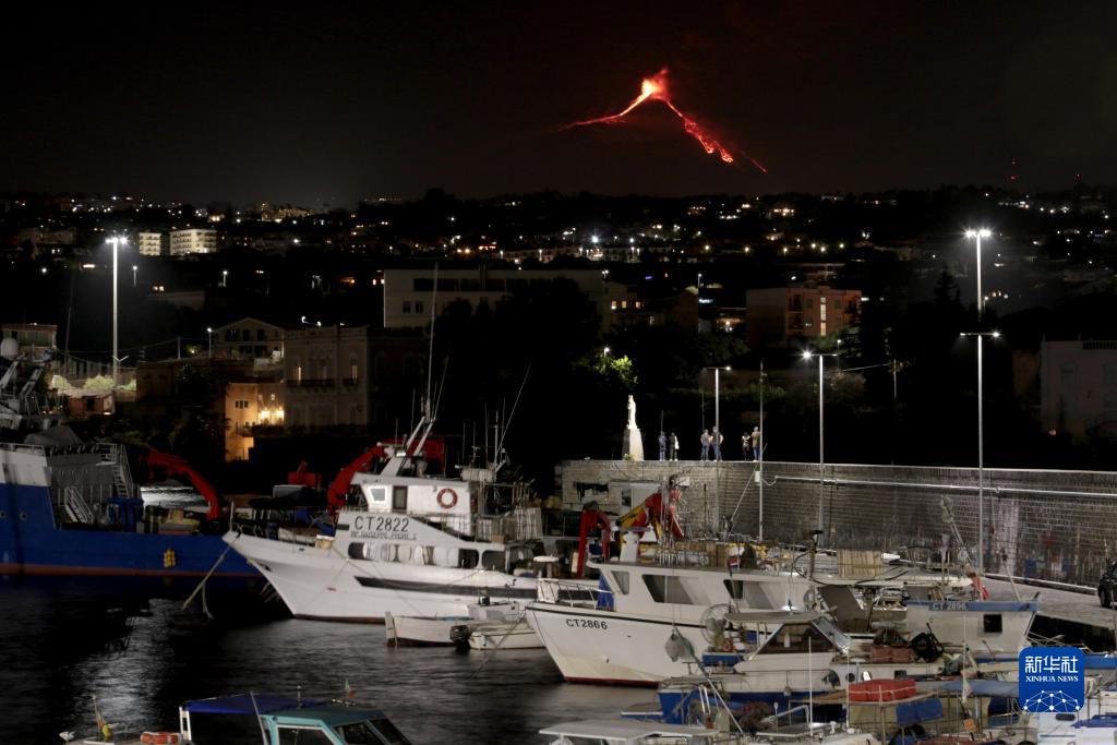這是12月1日在意大利西西里島卡塔尼亞拍攝的噴發中的埃特納火山。