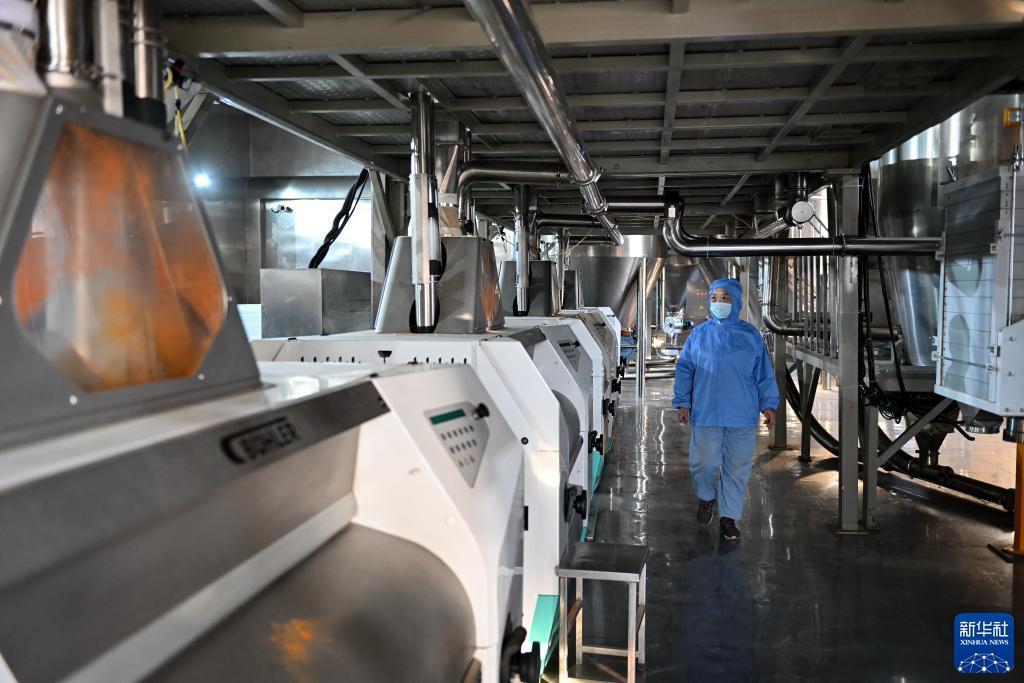 12月1日,河北省望都縣一家辣椒加工企業的工人在辣椒面生產線上工作。