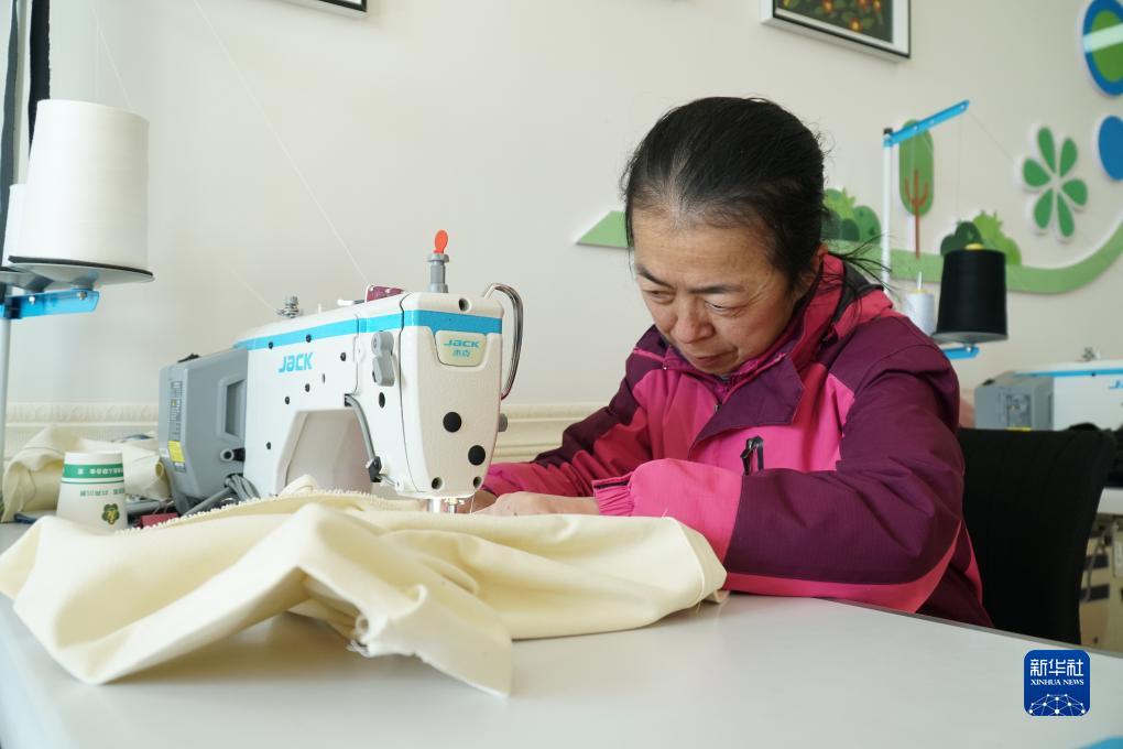12月1日,在青海省西寧市星辰社會工作服務中心“智愛工作坊”輔助性就業基地,就業員工在縫制帆布袋。
