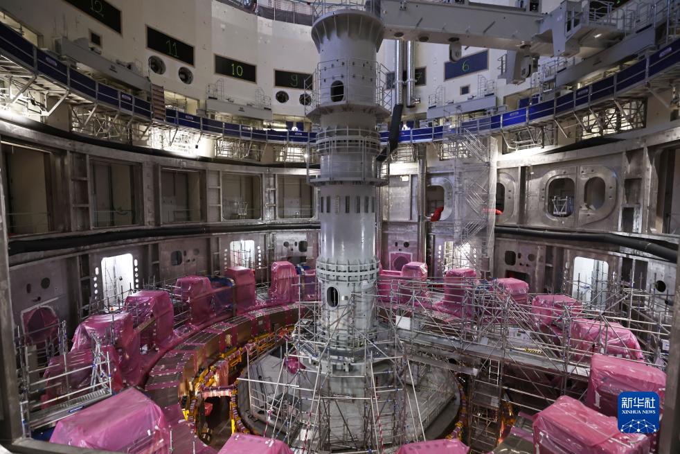 這是11月23日在位于法國圣保羅-萊迪朗斯的國際熱核聚變實驗反應堆(ITER)建設現場拍攝的安裝中的托卡馬克裝置。