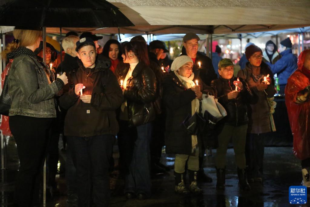 12月1日,人們手持蠟燭在美國紐約參加世界艾滋病日宣傳活動。
