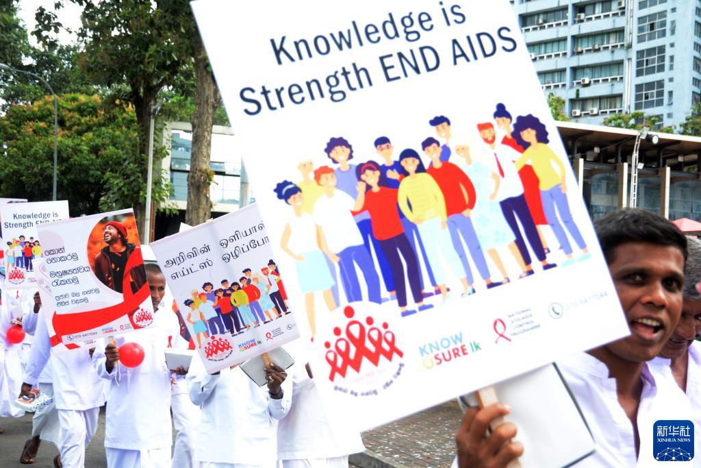 12月1日,人們在斯里蘭卡科倫坡參加世界艾滋病日宣傳活動。