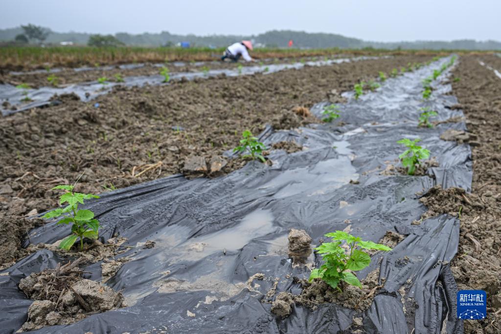 12月2日在海南省屯昌縣楓木鎮拍攝的農民剛種下的楓木苦瓜苗。
