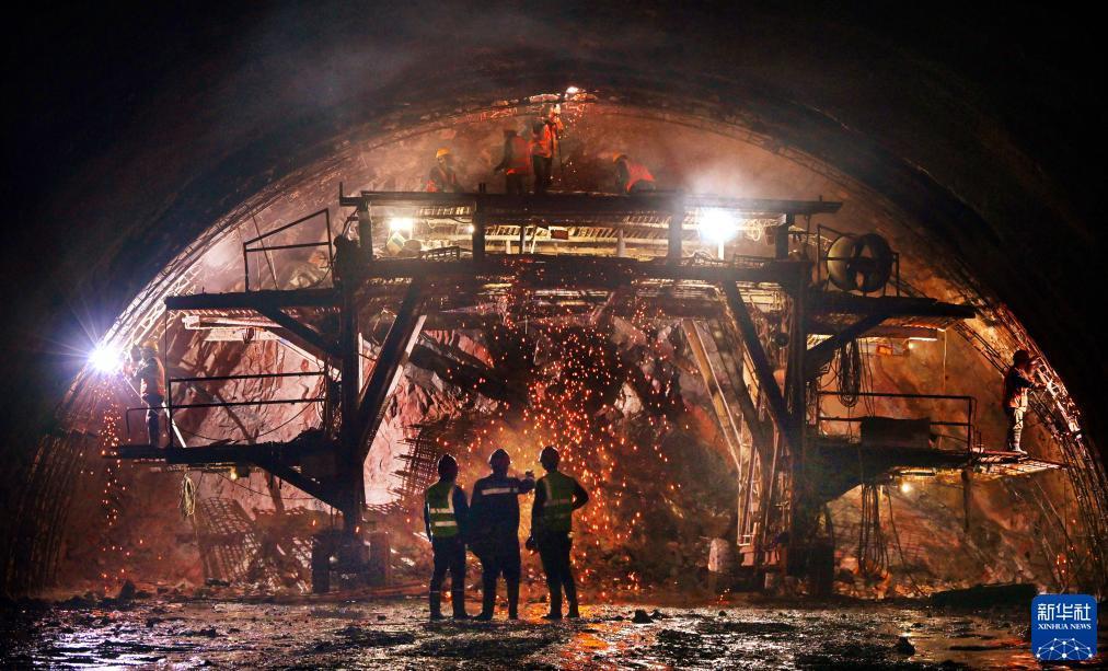 11月27日,中鐵二局建設者在膠州灣第二海底隧道內施工作業。