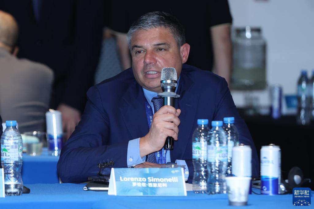 12月1日,在聯合國氣候變化迪拜大會期間舉行的中外知名企業家對話會上,美國貝克休斯公司董事長兼首席執行官洛倫佐·西莫內利發言。