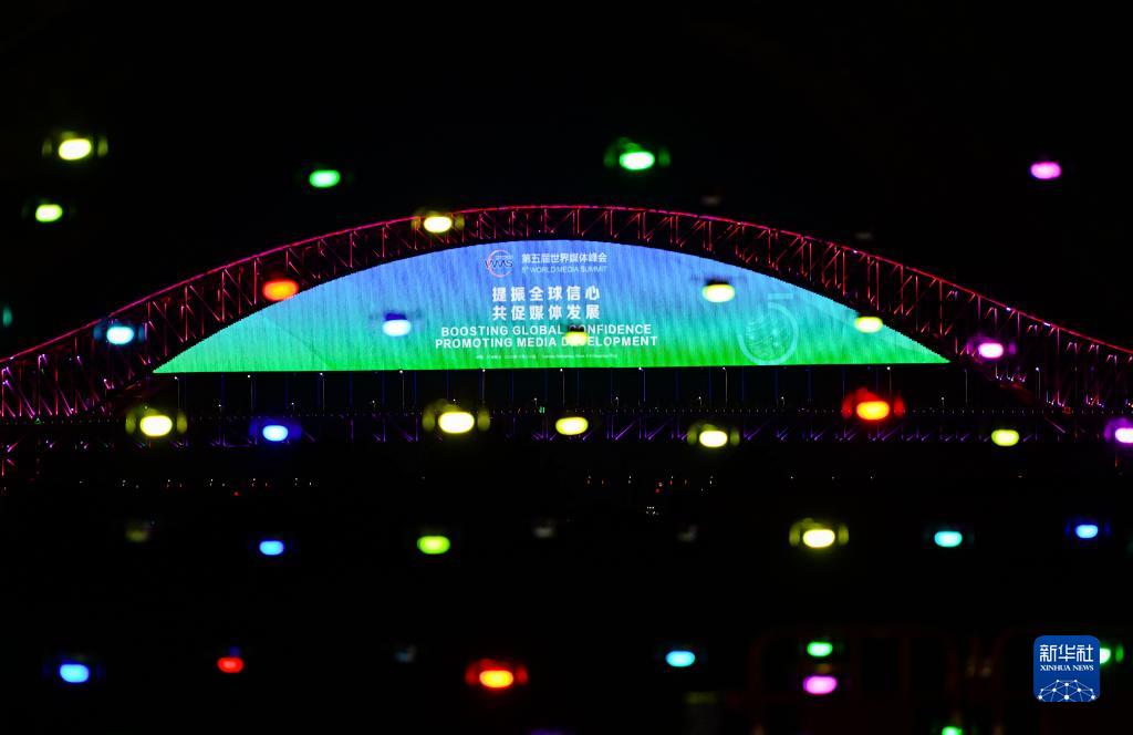 第五屆世界媒體峰會|廣州南沙地標電子屏亮燈