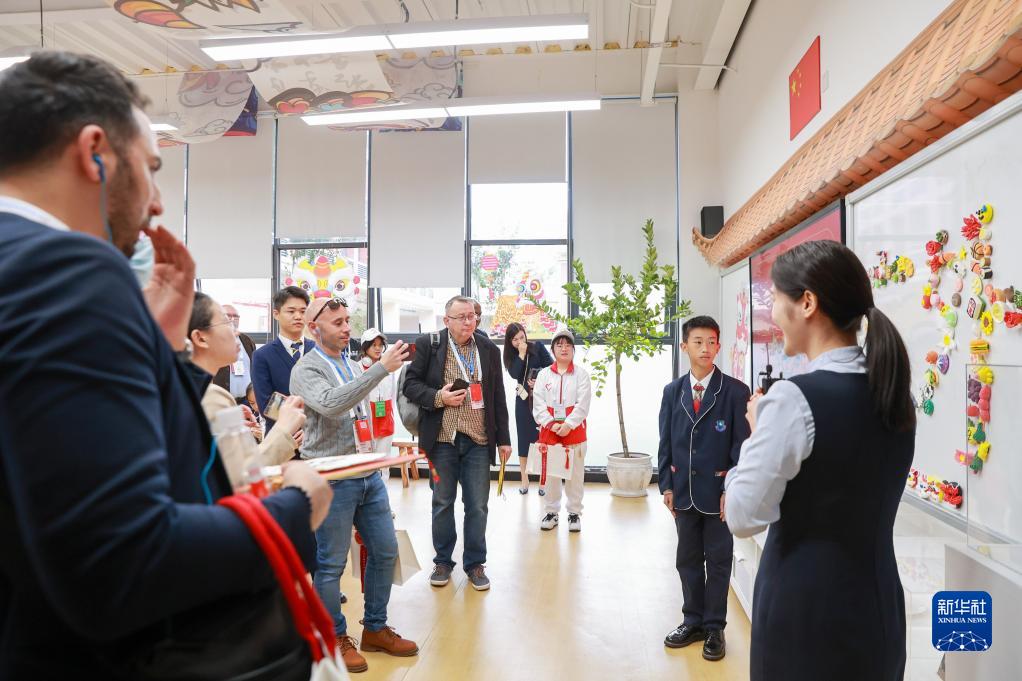 12月2日,世界媒體峰會參會代表在廣州外國語學校參觀。