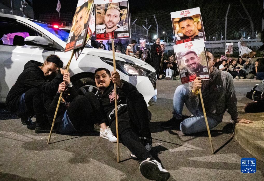 12月2日,在以色列城市特拉維夫,防空警報響起時,身處室外的人們降低身位避難。