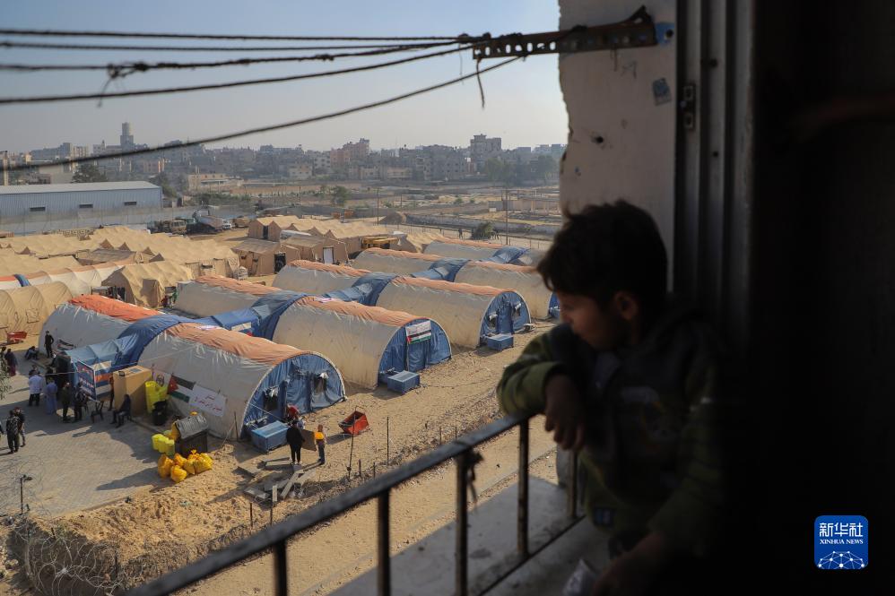 這是12月2日在加沙地帶南部城市汗尤尼斯拍攝的一家臨時醫院外景。