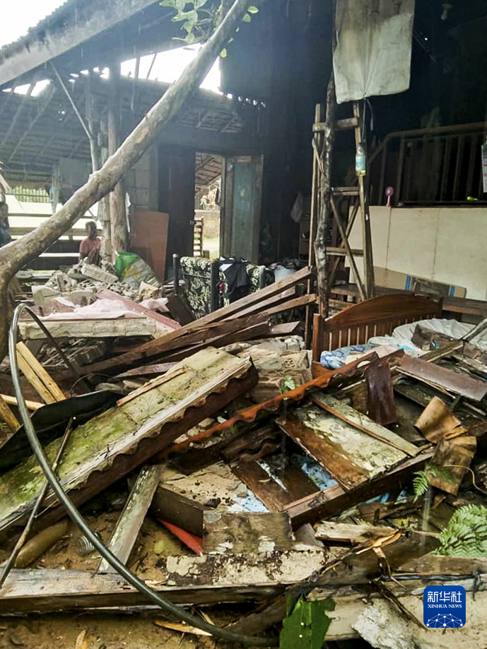 這是12月3日在菲律賓南蘇里高省拍攝的在地震中受損的建筑。
