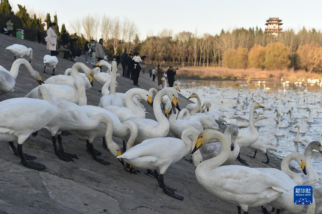 12月1日在三門峽市天鵝湖國家城市濕地公園拍攝的天鵝。