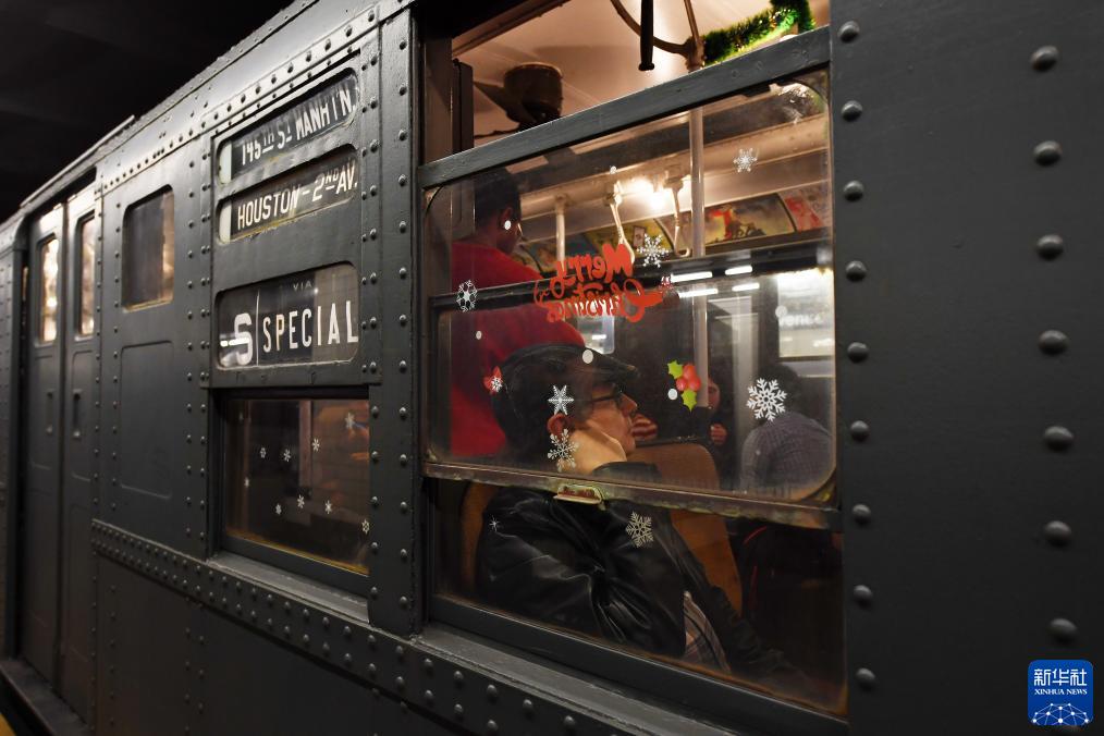 12月2日,在美國紐約,人們乘坐“懷舊地鐵”專列。