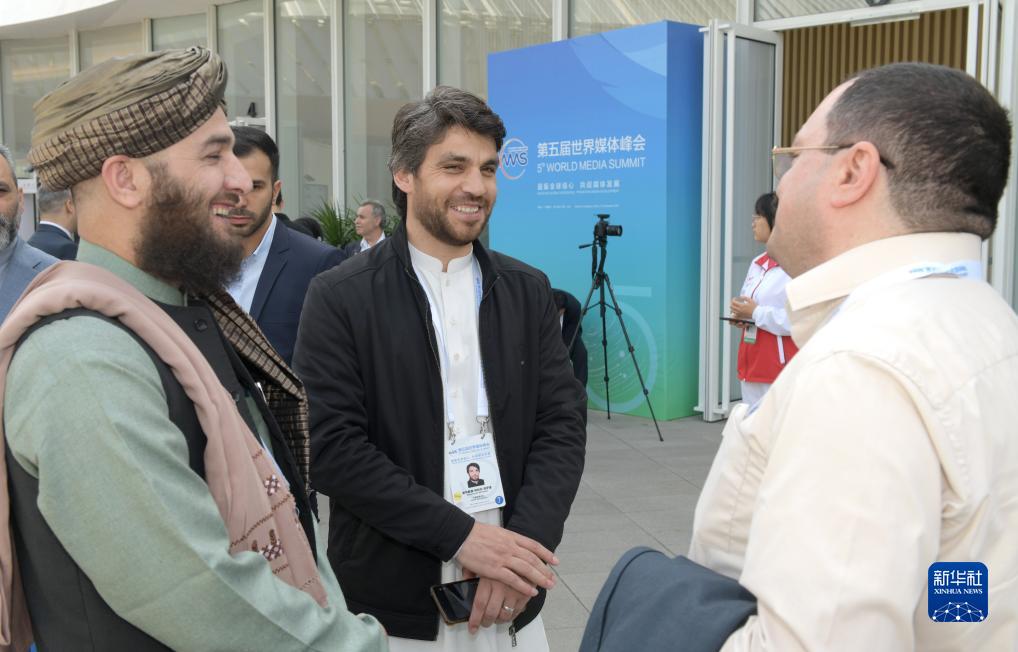 12月3日,參會代表在第五屆世界媒體峰會開幕式現場交流。