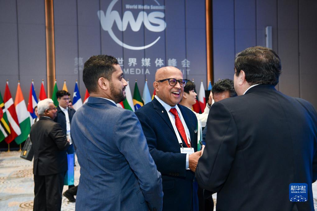 12月3日,參會代表在第五屆世界媒體峰會開幕式現場交流。