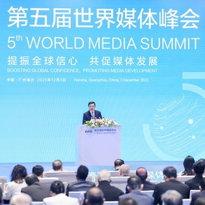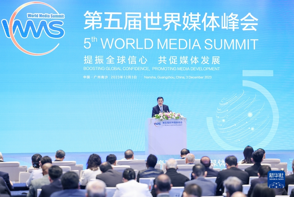 12月3日,以“提振全球信心 共促媒體發展”為主題的第五屆世界媒體峰會在廣州南沙舉行開幕式暨全體會議。來自世界101個國家和地區的197家主流媒體、智庫、政府機構、駐華使領館以及聯合國機構和國際組織的450余名代表參加本屆峰會。這是世界媒體峰會執行主席、新華通訊社社長傅華作主旨發言。