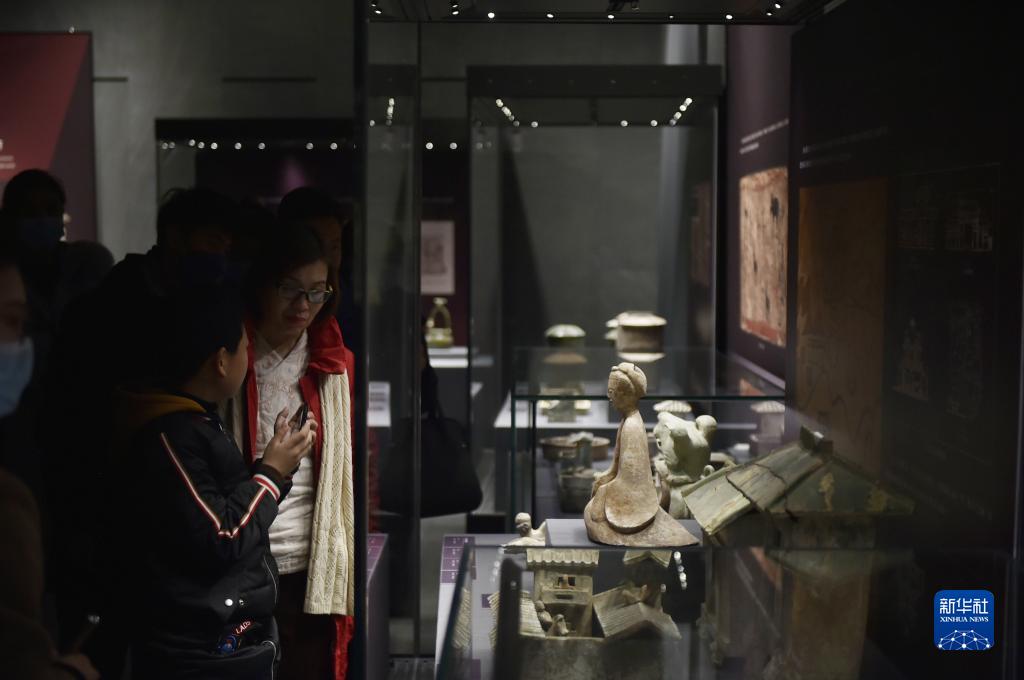12月3日,觀眾在三門峽廟底溝博物館參觀“秦風漢韻靚崤函文物展”。