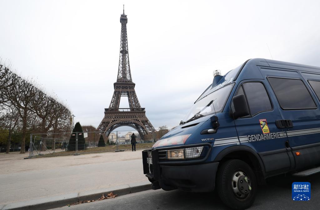 12月3日,一輛憲兵車輛停在法國巴黎埃菲爾鐵塔附近。