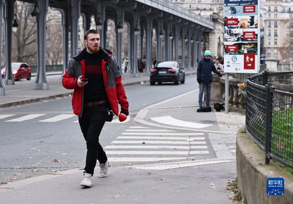 12月3日,一名電視記者在位于法國巴黎埃菲爾鐵塔附近比爾哈凱姆橋上的襲擊事件現場工作。