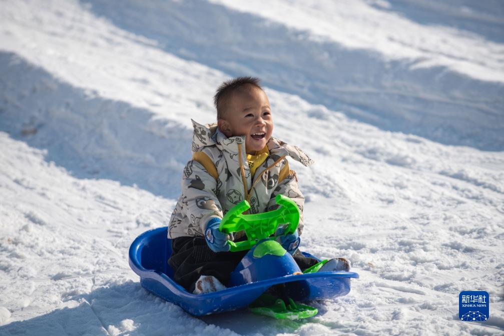 12月2日,游客在銀川市閱?;﹫鲶w驗冰雪活動。