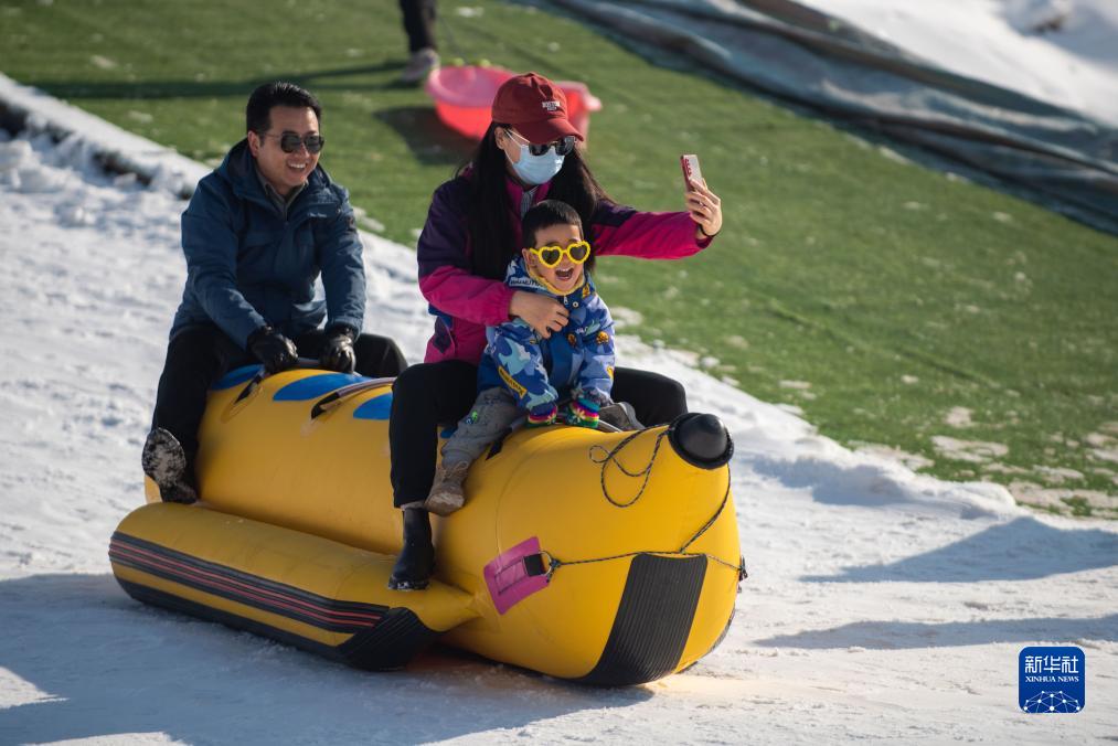 12月2日,游客在銀川市閱?;﹫鲶w驗冰雪活動。