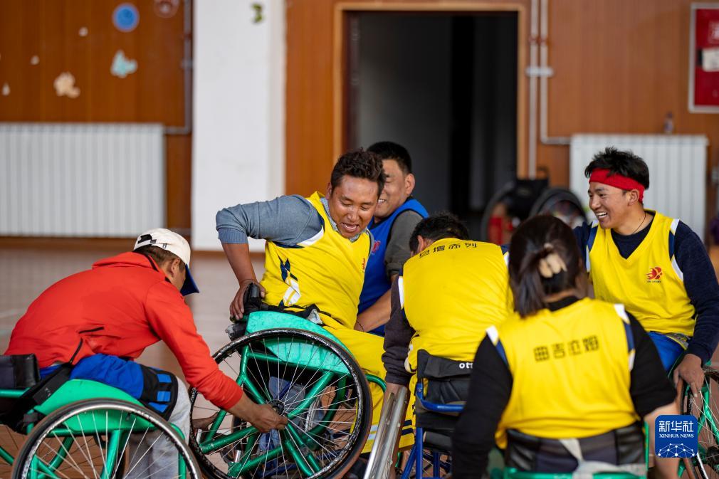 覺列(左二)在輪椅籃球訓練賽中(11月26日攝)。