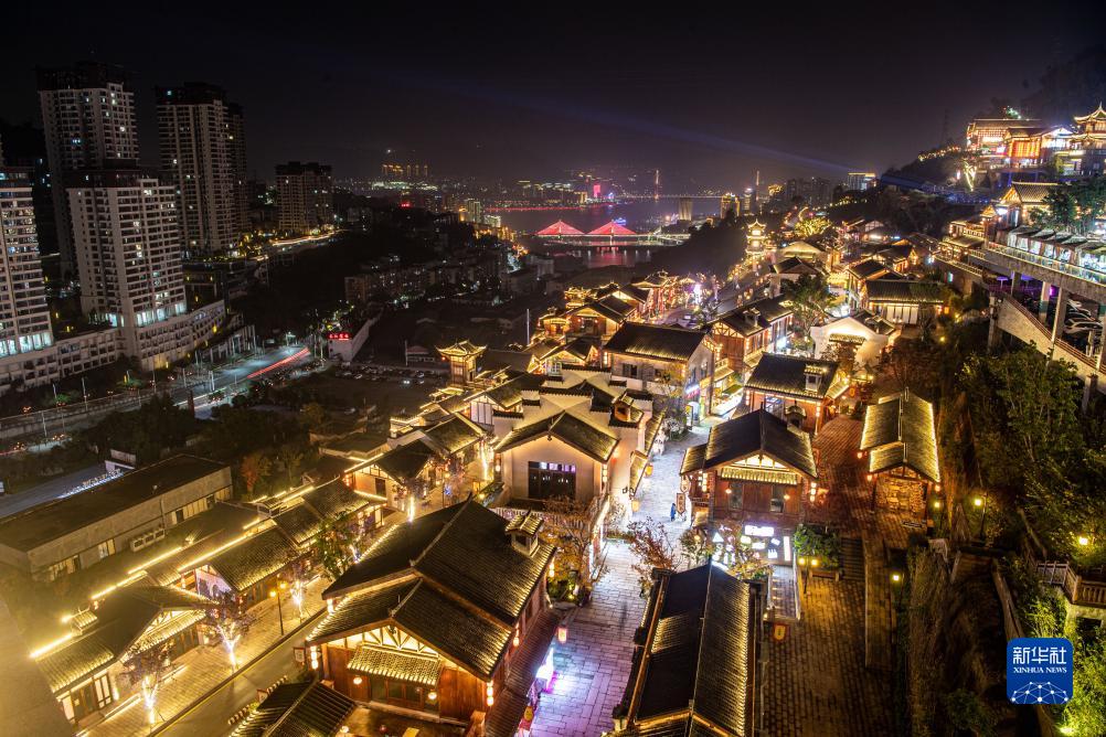 這是11月27日拍攝的重慶萬州天生城文旅街區夜景。該街區是依托天生城大遺址公園,融合天生城遺址歷史人文、渝東北特色民宿打造的集城市消費、旅游休閑于一體的文旅地標。